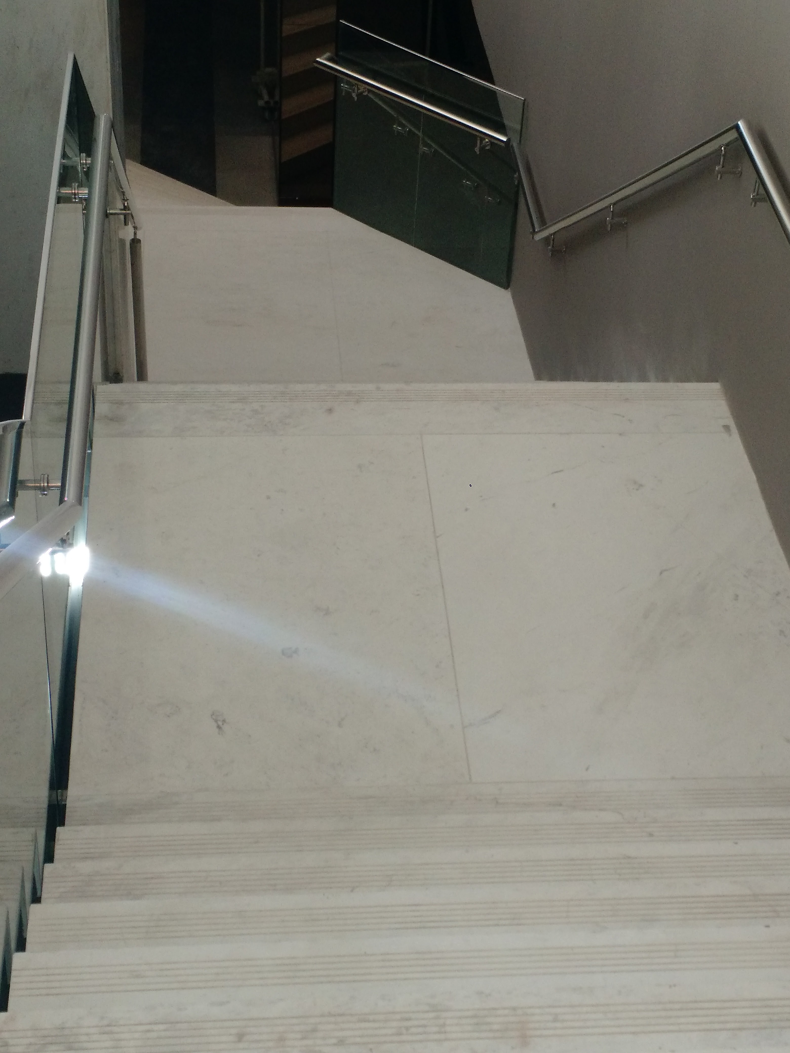 Dominus -Passeio Corporate - Detalhe da colocação em níveis da paredes revestidas em nármore Nero Marquina